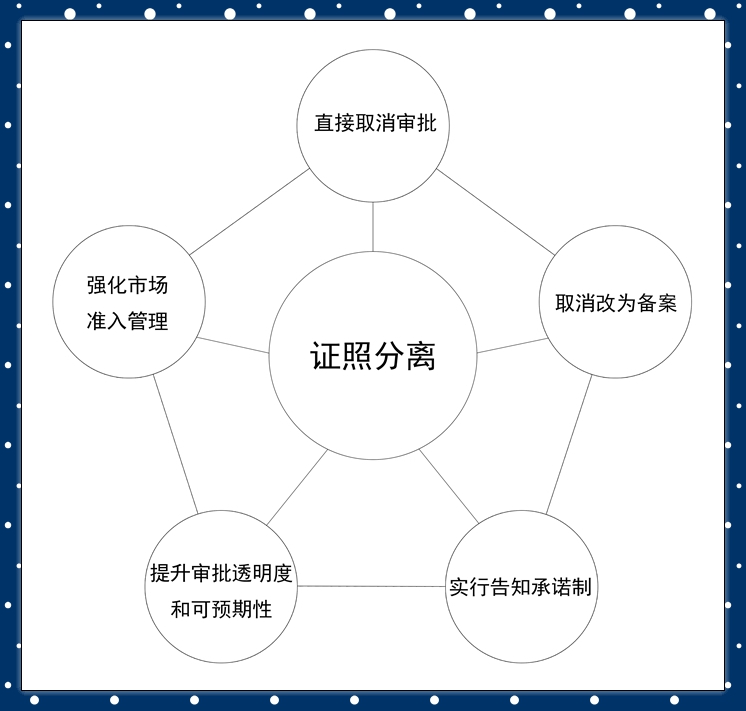 “证照分离”改革,是继企业注册资本“实缴改认缴”“先证后照”改为“先照后证”之后,我国商事制度改革的第三阶段,是进一步理清“证”“照”关系,理顺“证”“照”功能,提高审批效能的一项综合性改革。改革的重点是照后减证,通过采取清理取消一批、改为备案一批、告知承诺一批以及提高透明度和可预期性、加强市场准入管理等措施,进一步削减和弱化不必要的审批事项,最大可能减少行政权力对微观经济事务的干预,在更大的范围实现持“照”即可经营,促进市场在资源配置中的决定性作用。同时,按照“谁审批、谁监管,谁主管、谁监管”原则,建立与放宽市场准入相适应的监管机制,做到放开准入和严格监管无缝衔接、不留死角。