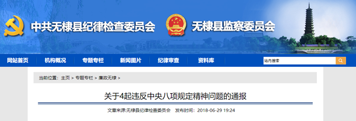 为进一步严明纪律,正风肃纪,巩固深化落实中央八项规定精神,严防“四风”问题反弹,教育广大党员干部严格自律,现将近期查处的4起违反中央八项规定精神问题通报如下: