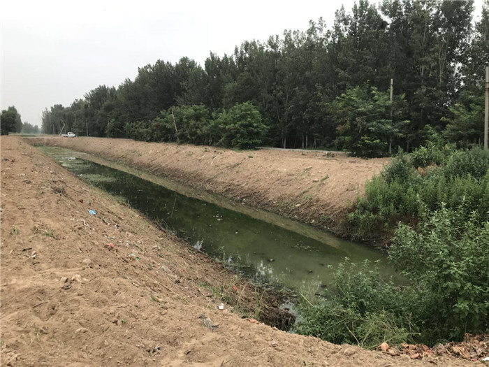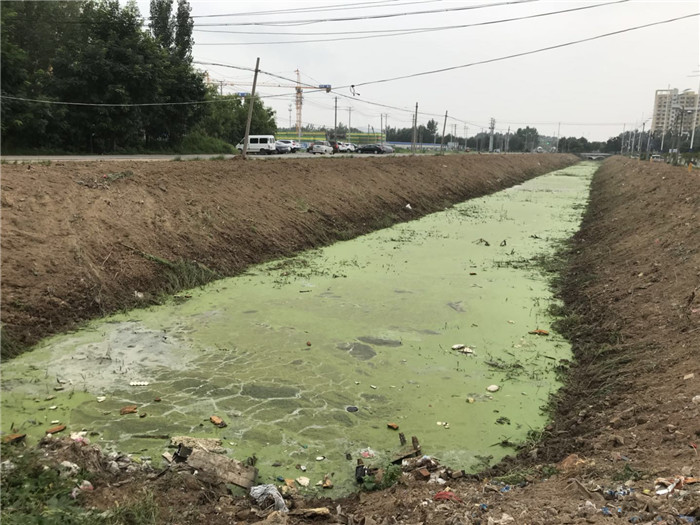 沙河街道范集小区附近二干沟水质发绿,漂浮垃圾等杂物。