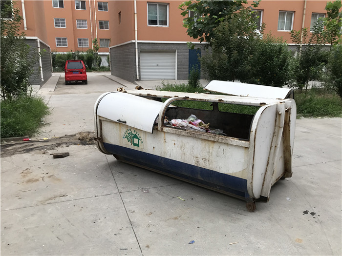 安顺花园小区垃圾箱没有箱盖,异味明显。
