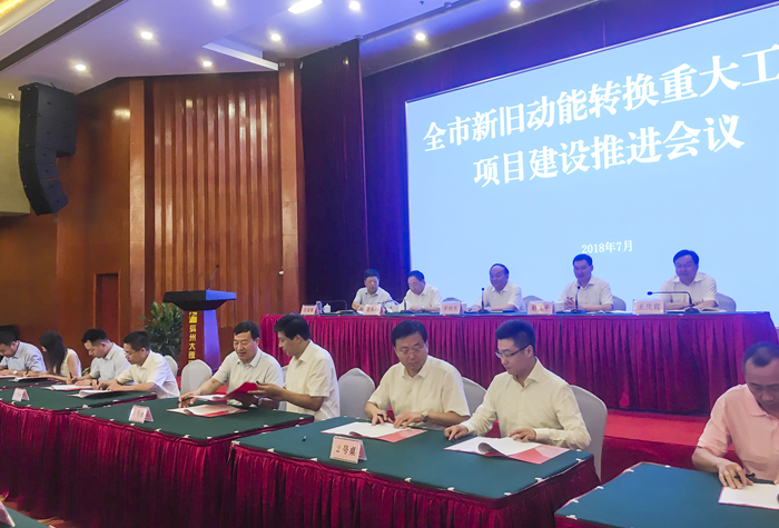 会议宣读了《滨州市人民政府办公室关于2018年省市重点建设项目和新旧动能转换重大工程“三个一批”项目进展情况的通报》;会上集中签约了18个项目、协议金额810.68亿元,邹平县、滨州经济技术开发区、香驰控股作了交流发言。