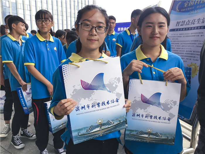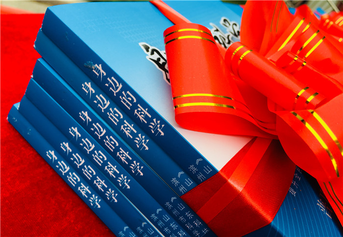滨州技术学院的学生展示拿到的《身边的科学》系列图书。