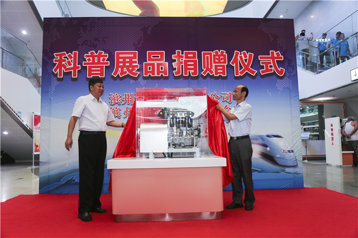 科普展品捐赠仪式上,渤海活塞捐赠给市科技馆大众四缸发动机真机。