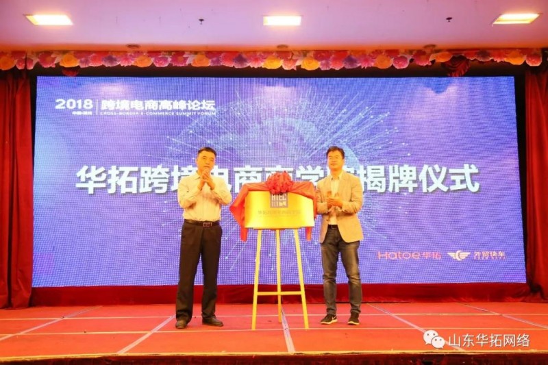 滨州市人才服务中心副主任张波同滨州学院信息工程学院副院长李建磊为滨州首个拓跨境电商商学院揭牌。