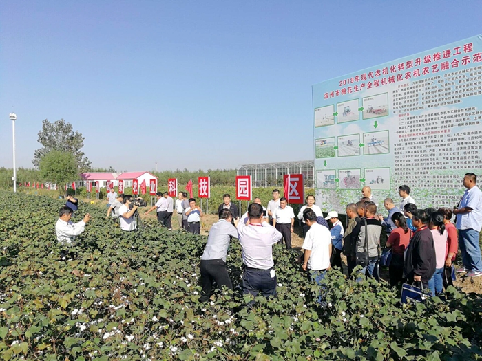 今年3月,黄河三角洲(滨州)国家农业科技园区与市农机局深度合作建立棉花全程机械化农机农艺融合示范基地,以种植国家棉花产业联盟主推的具有抗黄萎、耐盐碱、耐瘠薄、适宜黄河三角洲地区种植的高产稳产品种“中棉100”为主,实施平台建设、机具研发、技术支持、加工应用、管理培训共同推进,积极探索棉花生产全程机械化农机农艺融合技术路线,试验示范无膜栽培棉花生产全程机械化农机农艺融合技术路线,辐射带动黄河流域棉花产业发展转型升级。