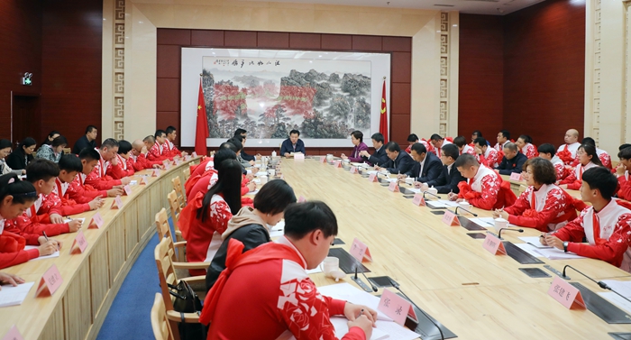 张光峰首先对成绩的取得表示祝贺,对运动员、教练员和保障服务人员的付出表示慰问和感谢。他表示,要发扬成绩,总结经验,努力再创新的辉煌。在省运会八个多月的比赛时间里,滨州代表团出色地完成了省运会参赛目标任务,实现了运动成绩和精神文明的双丰收,充分展现了我市的竞技体育实力,为全市人民争了光、添了彩,为滨州赢得了荣誉。在肯定成绩的同时,也必须看到,我们对比其他兄弟市,还面临“前有标兵、后有追兵,标兵渐远、追兵逼近”的严峻形势。必须总结经验、分析不足,结合新时代的新要求,继续开拓、继续奋进,确保在25届省运会上取得更好成绩。