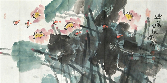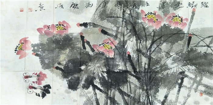 清荷酌舞满池香 68cm×136cm