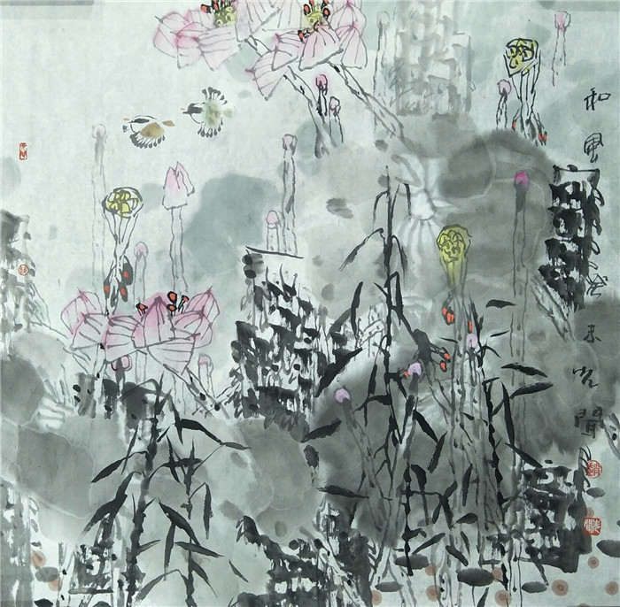赏荷图 68cm×68cm