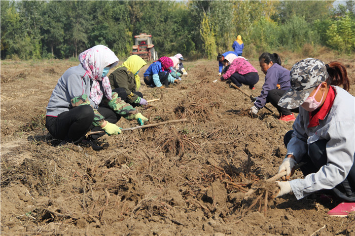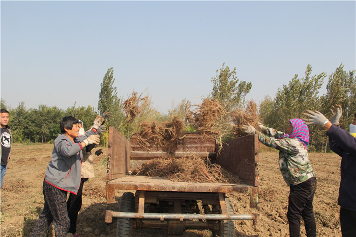 笔者在现场看到,一台大型机械正在地理来回穿梭挖掘丹参,十几名工人正往车上装丹参,现场一派热闹景象。张建忠给笔者算起了一笔账,今年丹参遇到一些涝灾,但丹参每亩产量平均在2000公斤以上,每公斤鲜丹参售价4元左右,药材公司直接上门抢购,算起来除去种植成本,每亩纯收入在5000多元以上,如果自己烘干再卖,亩收人超过万元,比种庄稼强多了。