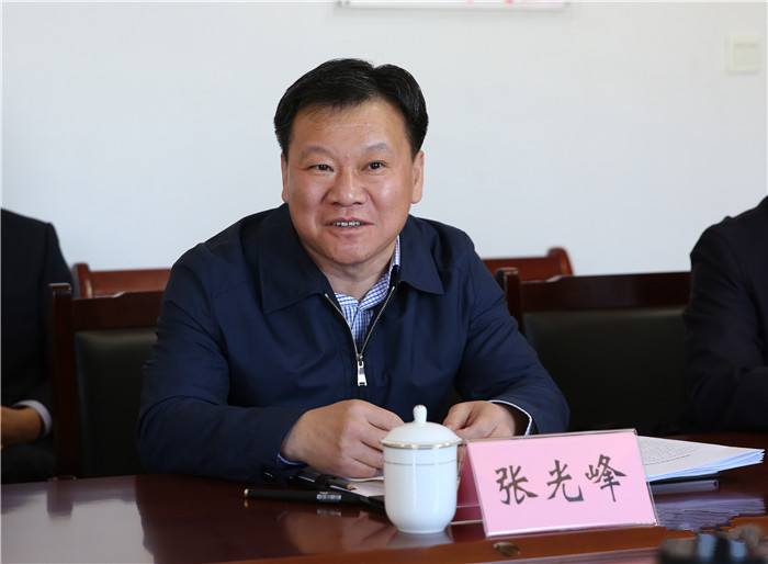 张光峰在座谈会上汇报滨州经济社会发展情况。