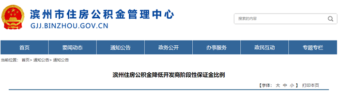 12月19日,滨州市住房公积金管理中心发布《滨州住房公积金降低开发商阶段性保证金比例》的公告,具体内容如下