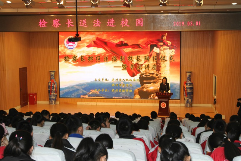 市检察院党组书记、检察长赵霞受聘为滨州实验学校法治副校长,并向学校赠送了《青少年法律必读》及《青少年以案学法读本》等法律读物,并表示接下聘书,意味着接下一份责任,将与老师们共同陪伴实验学校学子成长成才。
