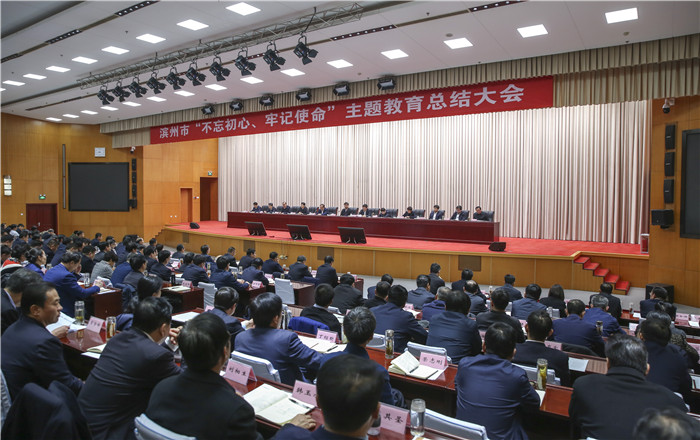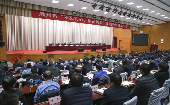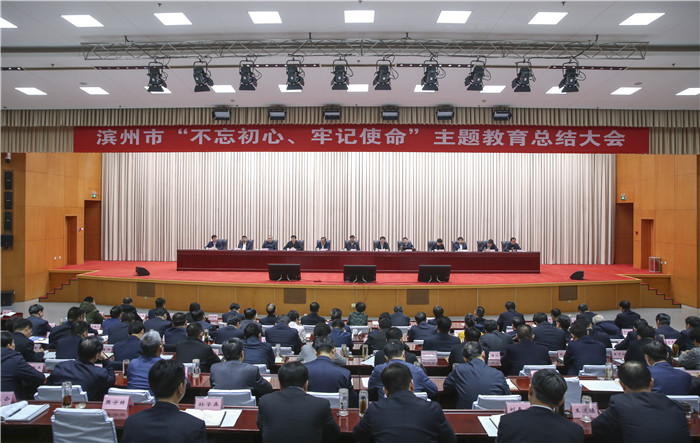 1月13日,滨州市“不忘初心、牢记使命”主题教育总结大会召开。大会深入学习习近平总书记关于“不忘初心、牢记使命”主题教育的重要讲话和重要指示批示要求,贯彻落实中央、省主题教育总结大会精神,回顾总结我市主题教育取得的成效,巩固拓展主题教育成果,凝心聚力加快推进“富强滨州”建设。