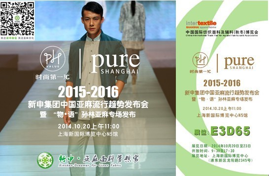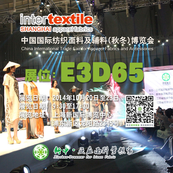 这将会是“亚麻流行趋势”在国际级的纺织盛会中第三次亮相,记者从主办方中国麻纺行业协会以及承办方新申集团了解到:2015/2016中国亚麻流行趋势发布将于10月20日上午10时在博览会上N5馆举行。同时中国麻纺行业协会还宣布“中国亚麻流行趋势”由国内亚麻面料重量级品牌新申亚麻特邀国内新锐设计师孙林共同合作,打造中国亚麻流行趋势创意时尚汇,为人们带来一场中国亚麻为主题的感官盛宴。