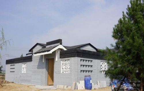9月6日,记者来到位于狮子刘村西南的3D打印创意产业园,那里已有两座苏州式庭院,一座小白楼、门卫房、小木屋落成,一所迪拜房即将完工。上 述两座庭院充满江南风情,迪拜房富有中亚特点,同时所有建筑有个共同特征--墙里墙外没有一块砖!这些房子的建成只用了两个月!