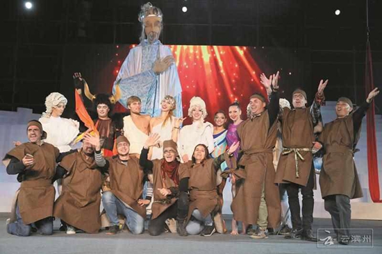 闭幕现场的文艺晚会名为“天齐滨州梦幻剧”。该剧分为夏禹治水、盐铁渔利、希腊缪斯、大齐天下、逐梦未来等五个部分。藉此,在历史上没有直接联系的希腊文化和齐文化在西纸坊实现了舞台交汇。其中,锅子饼美食制作等滨州本土文化有机融入了舞蹈环节,创意之精,赢得现场阵阵掌声。