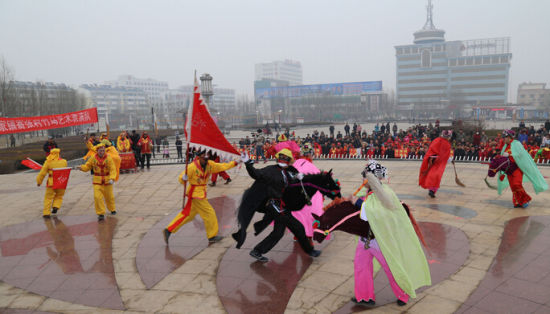 当天,2017年全区乡镇民间艺术汇演举行,13支由群众演员组成的表演队相继登台亮相,带来了极具地方特色的民间艺术表演。非物质文化遗产竹马、节奏明快的锣鼓、气势恢宏的舞狮、喜气洋洋的秧歌,展示了该区浓厚的文化底蕴和丰富的民间艺术,让群众享受了一场精美的文化盛宴。(张康 高占根 陈磊 王建彬)