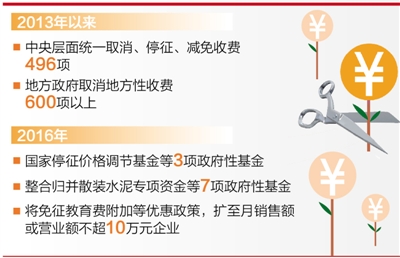 “2016年,国家进一步清理收费基金,停征价格调节基金等3项政府性基金,整合归并散装水泥专项资金等7项政府性基金。特别是针对小微企业,加大了降费力度。”财政部税政司有关负责人介绍。