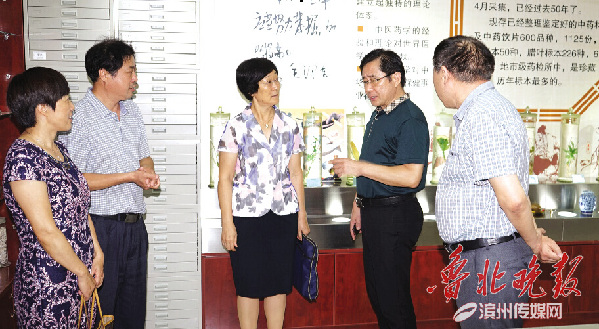 市食药监管局局长赵惠民(右二)陪同市领导到市食品药品检验检测中心实地调研(资料图)