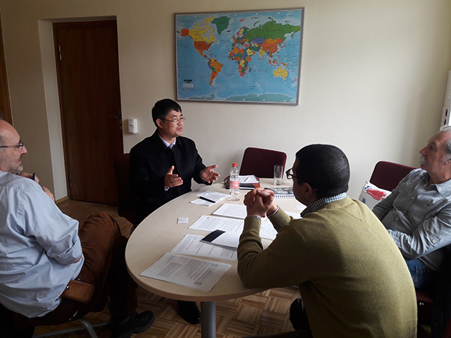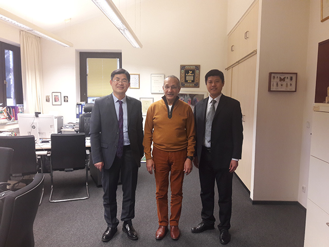 柏林疫苗高层论坛结束后,何诚教授和曲光刚博士应柏林自由大学兽医学院禽病研究所所长、前世界禽病研究理事会主席HafezMohamadHafez教授的邀请,参观考察了柏林自由大学兽医学院禽病研究所,何诚教授向Hafez教授转达了沈志强院长的问候,并就ORT疫苗研制、诊断试剂盒开发、访问学者交流和研究生交换项目达成合作协议。随后,何诚教授和曲光刚博士拜访了德国联邦动物健康研究中心耶那中心,与病原细菌和人兽共患病研究所所长HeinrichNeubauer教授进行亲切的交谈,并就“中德合作项目申报和人兽共患病诊断新技术”达成合作协议。