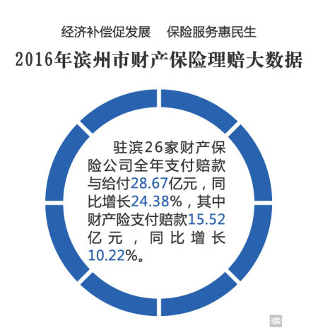 3月13日,记者从滨州市保险行业协会获悉,2016年驻滨26家财产保险公司全年支付赔款与给付28.67亿元,同比增长24.38%,其中财产险支付赔款15.52亿元,同比增长10.22%。