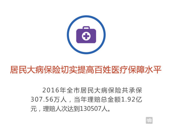 2016年全市居民大病保险共承保307.56万人,当年理赔总金额1.92亿元,理赔人次达到130507人。博兴县店子镇王先生,2016年3月22日因病在首都医科大学附属北京天坛医院住院治疗7天,总共花费34.08万元,基本医保补偿7.97万元。基本医保报销后,客户又到人保财险博兴支公司申请居民大病保险理赔,经公司审核最后赔付13.05万元。通过居民大病保险的保障,客户实际报销比例由只有医保的23.38%提高到两项合计达61.68%。