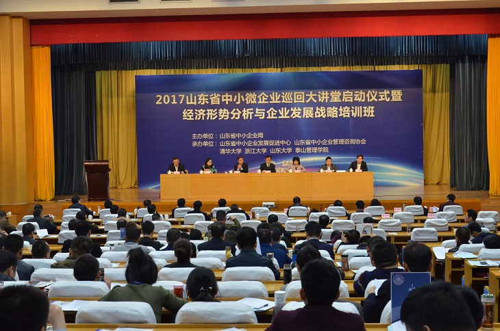 3月15-16日,2017年山东省中小微企业巡回大讲堂启动仪式暨经济形势分析与企业发展战略培训班在济南成功举办。主要任务是贯彻落实《省委办公厅、省政府办公厅关于加强企业家队伍建设的意见》和山东省中小企业局《2016-2020年山东省中小微企业培训规划》,指导全省中小企业系统干部和企业高管把握宏观经济形势走向,精准制定企业发展战略,提升中小企业创业创新能力,启动今年全省中小微企业巡回大讲堂和培训工作。省中小企业局胡立新副局长出席并讲话,省中小企业发展促进中心伊继文主任主持开班仪式。