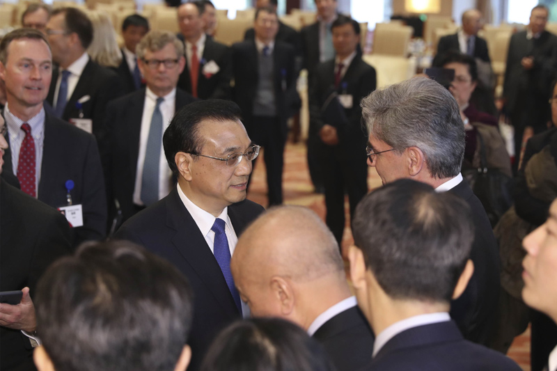 国务院总理李克强20日上午在钓鱼台芳华苑会见来华出席中国发展高层论坛2017年年会的境外代表,并同他们座谈交流。来自世界500强企业的负责人、国际知名学术和研究机构的专家学者、主要国际组织和媒体的代表等100多人参加。