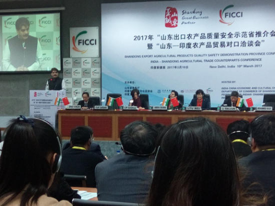 在印度新德里,代表团参加了“山东出口农产品质量安全示范省推介会暨山东—印度农产品贸易对口洽谈会”,中国驻印度大使馆经商处参赞李柏军、印度工商联合会总干事安比卡·沙玛和印中经济文化促进会秘书长穆罕默德·萨其夫出席会议并致辞。山东省十里香芝麻制品有限公司、滨州北海新区海旺水产科技有限公司与5家印度企业开展了6场次的一对一对口洽谈,达成进出口意向8万美元。在印度期间随省团参加了“印度农业和食品行业商机研讨会”,邀请印度食品农产品贸易领域专家卫杰·萨达纳介绍了印度农业生产、农产品贸易基本情况和当前印度食品农产品进出口政策。拜访了印度商业和工业部、贸促会,实地考察了第32届印度国际食品展和OKlah农贸市场。