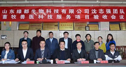 2017年3月24日上午,在山东绿都生物工程高科技园第一会议室,受滨州市服务业发展局委托,滨州展弘工程管理咨询有限公司组织有关专家对我院承担的山东省服务业创新团队项目-“山东绿都生物科技有限公司沈志强畜牧兽医科技服务创新团队”项目进行了验收。验收会议由滨州经济技术开发区经发局牛磊科长主持。