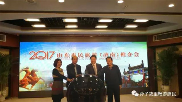 3月22日下午,孙子故里惠民县旅游济南专场推介会在山东新闻大厦举行,山东省旅发委副主任张明池、济南市旅发委市场处处长刘荣耀、滨州市旅发委副主任荆晓玲等省市旅发委领导及惠民县委、县人大、县政府、县政协四大领导班子相关领导出席会议。济南、滨州两地50余家媒体记者和60余家旅游企业代表应邀参加了此次活动。省旅发委张明池副主任讲话指出,山东省旅发委高度重视惠民旅游业的发展,在2017年重点打造的十大文化旅游目的地品牌中,将惠民孙子兵学文化、红色文化列入到“黄河入海”这一品牌体系中,希望惠民县人民政府把握好这次机遇,以兵学文化的传承与发扬为基点,大力发展兵学文化、温泉文化、古城文化旅游。同时他表示,济南、滨州两地历史渊源颇深,资源互补性很强,希望两地以旅游为纽带,密切各方面的合作,合作共赢。也希望两地的旅游产业能越做越好、越做越强,为全省的旅游业发展做出更大贡献。惠民县委副书记、县长夏培剑在致辞中讲到,惠民县有着丰富的旅游资源,当前,惠民县正全力实施“旅游富县”战略,整合优势资源,科学规划定位,突出差异特色,实施大项目、拓展大市场、培育大产业、发展大旅游,加快推进全域旅游一体化发展,努力打造惠民县旅游品牌新形象,加快实现由旅游资源大县向旅游产业强县转型,全力打造黄河三角洲知名旅游休闲目的地。希望通过这次旅游推介活动,进一步加强与济南市及各旅游协会、团体、企业的交流合作,实现互利共赢。同时,他也代表惠民县全体人民向外界发出邀请,希望更多的人到惠民来旅游,来做客。惠民县旅游局局长刘志杰推介惠民旅游产品线路,与山东省中国青年社。山东省自驾游协会签订了战略合作协议。推介会上还举办了研学游机构授旗仪式、景区门票现场赠送、惠民旅游体验式聘任仪式等。