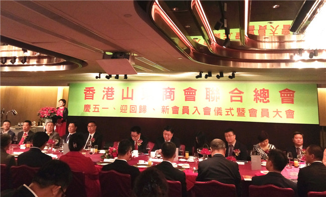 中联办经济部副巡视员杨文明,《山东人》杂志社社长、香港山东商会联合总会名誉会长曲玉国,山东省政协常委、中华海外联谊会理事、山东省海外联谊会副会长朱新胜,中华共济会常务副秘书长孙宏斌等部分驻港单位(团体)负责人及香港山东商会会员企业370余人参加会议。