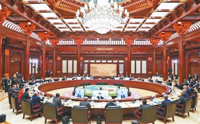 上午10时,习近平敲下木槌,宣布圆桌峰会开幕。