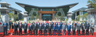 当天中午,习近平同与会领导人和国际组织负责人以国际会议中心“汉唐飞扬”主建筑为背景集体合影。