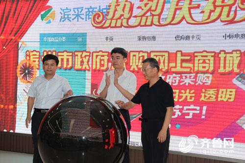 齐鲁网滨州6月9日讯(记者 陈帅)6月9日下午,滨州市政府采购网上商城“滨采商城”启用仪式在滨州市公共资源交易中心举行,标志着滨州市政府采购“网购”模式全面开启,实现了滨州市直预算单位政府采购足不出户、网上操作,当日采购、次日到达。滨州市政府副秘书长、办公室主任刘峰出席会议并讲话。滨州市直有关部门、单位分管负责同志,各县(区)财政局局长、公共资源交易中心主任,滨州经济技术开发区、高新区财政局局长,北海经济开发区财政局局长、公共资源交易中心主任参加会议。