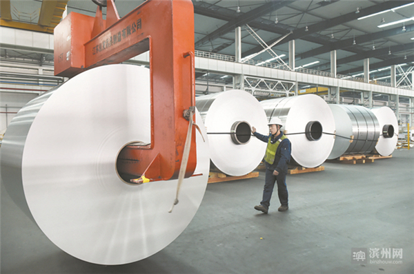 滨州铝产业链的发展凭借其“速度和激情”,被业界称为裂变式发展,已逐步形成铝土矿—氧化铝—电解铝—铝型材—铝精深加工制品的完整产业链,以魏桥创业集团为代表的一大批铝产业企业发展壮大。在“十三五”期间,我市又明确提出着力打造5000亿级高端铝产业集群,建设全国铝产业新型示范化基地。(董乃德 摄影)