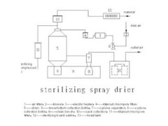 在无菌喷雾干燥系焼中,所有进入系统的物料和空气都必须除菌。产品的收集也必须在无菌室内进行,所以对需喷雾料液要经 过过滤除菌后方能送至喷雾器,对喷雾用的压缩空气也必须净化 后方能使用。(上列二项用户自理)