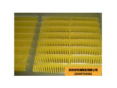 4、筛分精度高。聚氨酯筛网的生产工艺采用模具浇注成型工艺,孔径准确,筛分质量高,筛下物料的粒度能够很好地符合用户的要求。安装简捷,更换检修方便,该产品适合任何型式的筛分机,重量轻,为现场安装或是更换检修,大大减少了工作量。