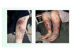 3、老烂腿的病情再进一步发展,在患肢的小腿内侧,外侧,胫前,胫后,踝部出现的溃疡,下肢特别是脚上可出现坏死,皮肤僵硬且容易破皮溃烂,而且创口溃烂久治不愈,严重者不得不接受截肢而致残。